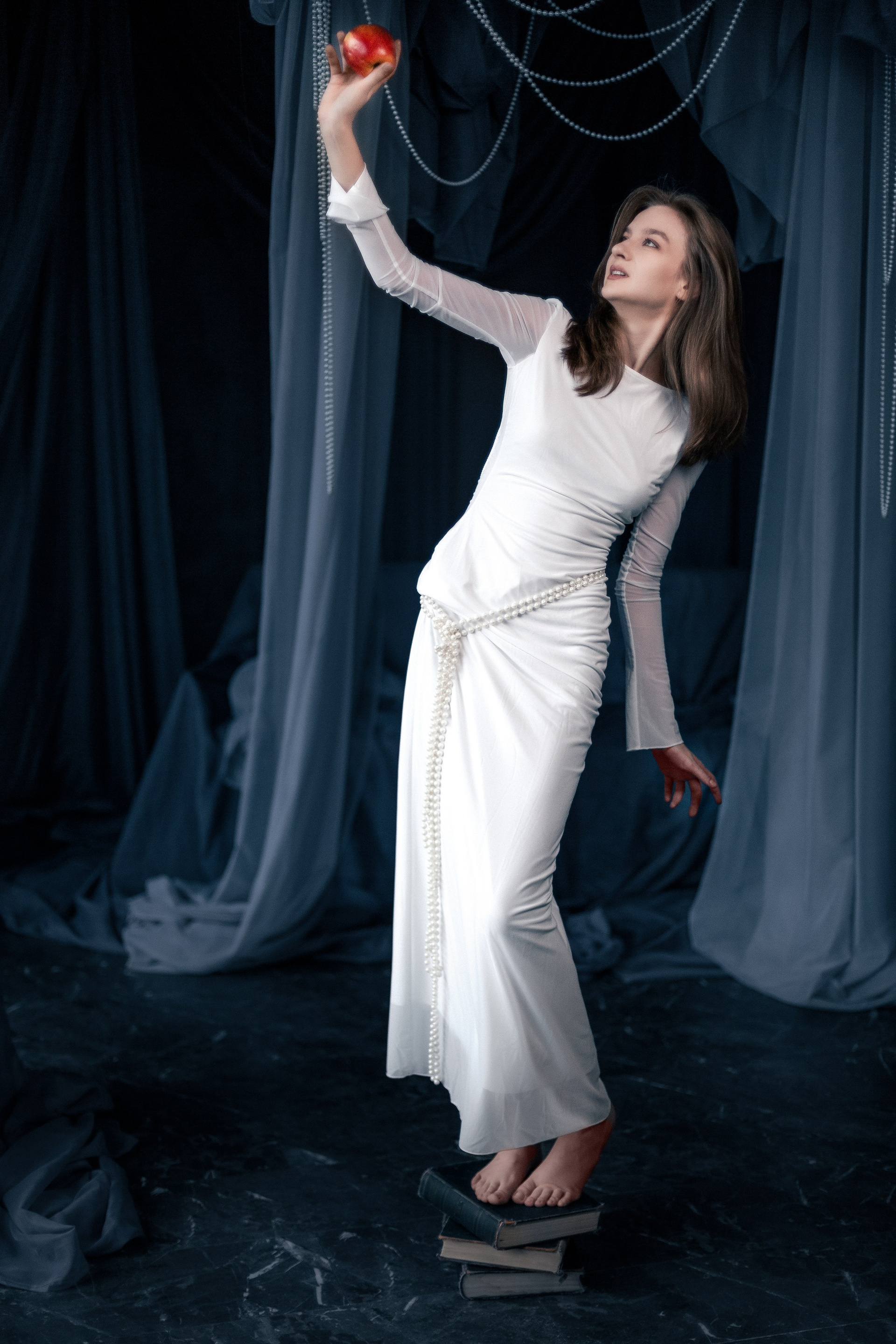Студийный портрет в полный рост. Чистая композиция и акцент на форме и позе. Full-body studio portrait with clean composition and focus on form.